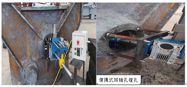 鐵水包鋼包中間包渣罐等冶金專用敞口容器類設備在使用一定時間后耳軸都會有不同程度的磨損,根據煉鋼煉鐵安全使用規范的要求,需要定期對耳軸進行探傷檢驗,檢驗不合格需要對耳軸進行拆除更換,傳統的更換方式需要將敞口容器運輸至大型落地鏜等加工廠進行耳軸孔的鏜制,由于敞口容器的體積較大,運輸成本很高,導致修復的經濟性不好。近些年也有些企業采用現場維修的方式進行現場修復,但是通常采用的是將耳軸火焰切割下來后直接根據耳軸孔的名義尺寸直接配置耳軸,這樣達到了現場更換耳軸的目的,但是經過維修后的耳軸與耳軸孔之間沒有了過盈配合量,與新制的敞口容器相比使用安全性大大降低。而我公司采用便攜式鏜孔設備在現場進行精加工,滿足更換的新耳軸和耳軸孔之間的過盈量。裝配效果等同新制敞口容器一樣。罐體修復我們采用罐壁自動切割機配合環縫自動焊接機,罐體修復后在罐體丁字口及環口焊縫的焊接質量是可以100%UT探傷合格。特點:現場高精度修復,性價比高,質量等同于新制產品。